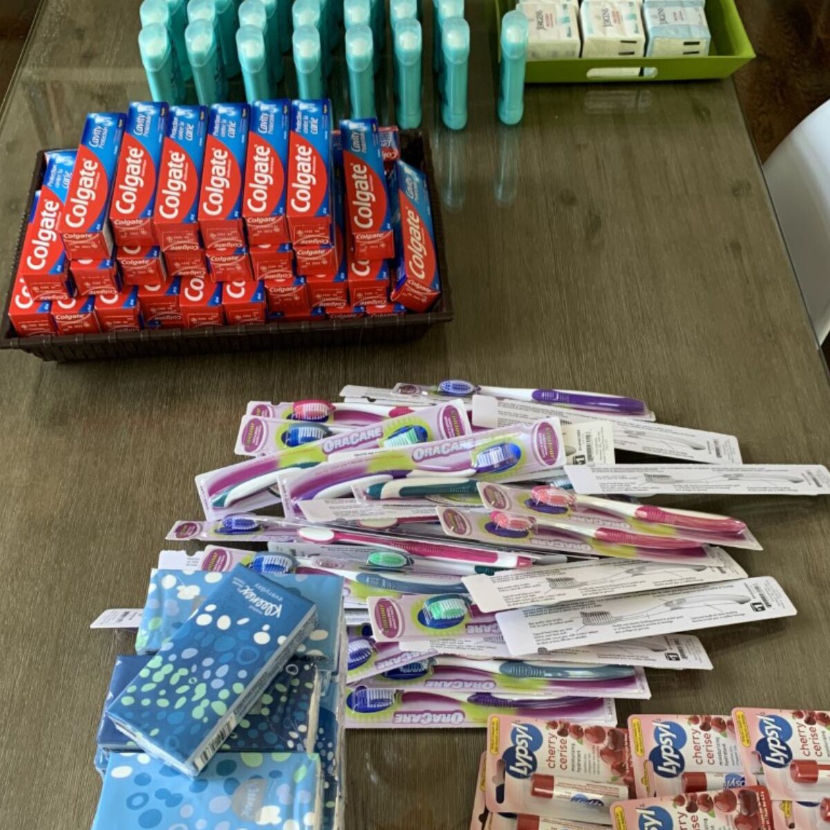 - Toothbrushes and toothpaste